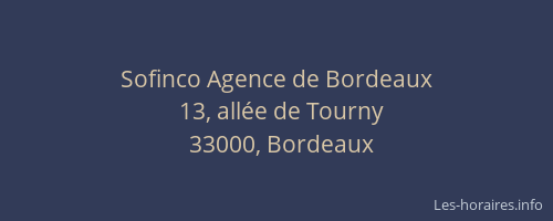 Voici les horaires de Sofinco Agence de situé à Bordeaux,