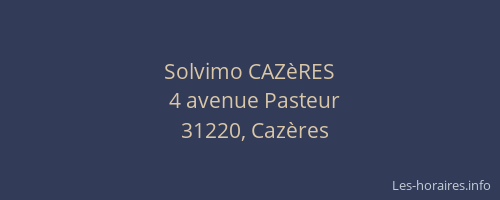 Voici les horaires de Solvimo CAZèRES situé à Cazères,