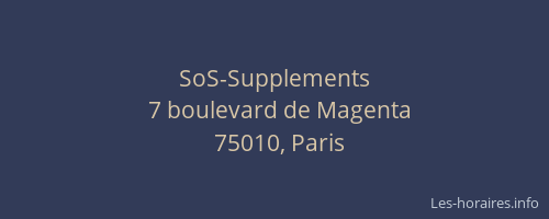 Voici les horaires de SoS-Supplements situé à Paris 10ème,