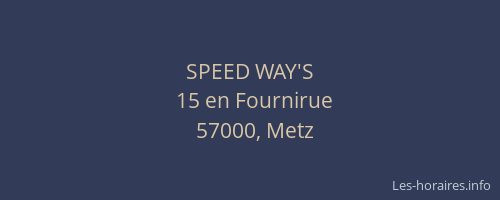 Voici les horaires de SPEED WAY'S situé à Metz,