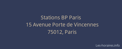 Voici les horaires de Stations BP situé à Paris 12ème,