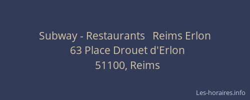 Subway - Restaurants Reims Erlon est il ouvert aujourd'hui ?
