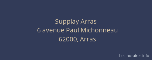 Voici les horaires de Supplay situé à Arras,
