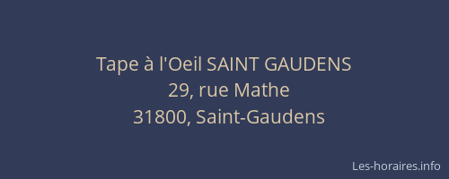 Voici les horaires de Tape à l'Oeil SAINT GAUDENS situé à Saint-Gaudens,