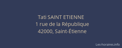 Voici les horaires de Tati SAINT ETIENNE situé à Saint-Étienne,