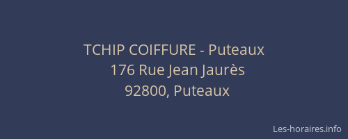 Voici les horaires de TCHIP COIFFURE - situé à Puteaux,