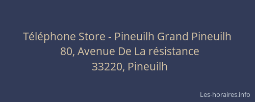 Voici les horaires de Téléphone Store - Grand situé à Pineuilh,