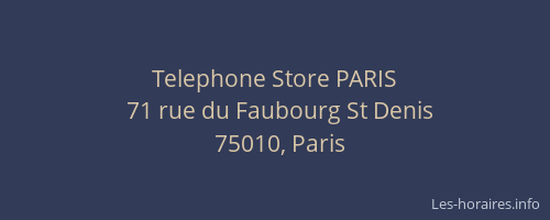 Voici les horaires de Telephone Store PARIS situé à Paris 10ème,