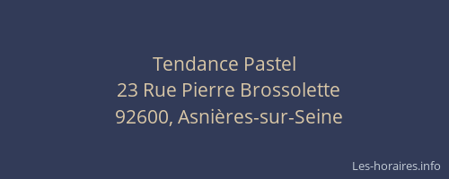 Voici les horaires de Tendance Pastel situé à Asnières-sur-Seine,
