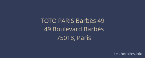 Voici les horaires de TOTO PARIS Barbès 49 situé à Paris,