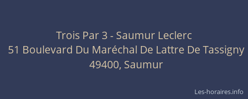 Voici les horaires de Trois Par 3 - Leclerc situé à Saumur,