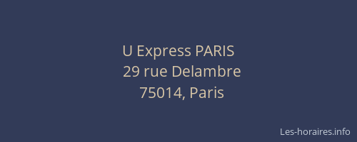 Voici les horaires de U Express PARIS situé à Paris 14ème,