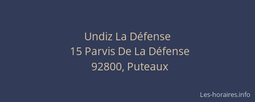 Voici les horaires de Undiz La Défense situé à Puteaux,