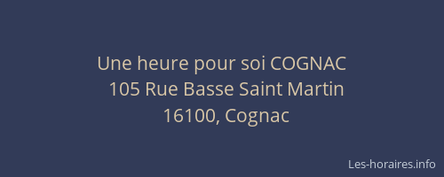 Voici les horaires de Une heure pour soi COGNAC situé à Cognac,