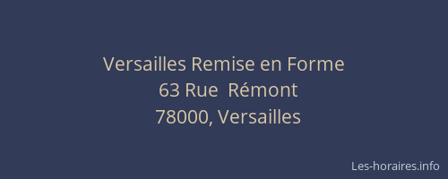 Voici les horaires de Remise en Forme situé à Versailles,
