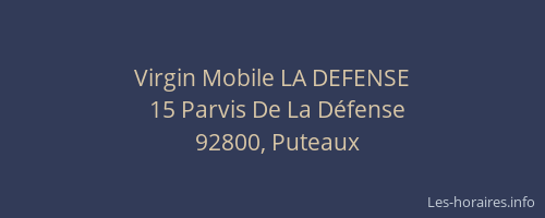 Voici les horaires de Virgin Mobile LA DEFENSE situé à Puteaux,