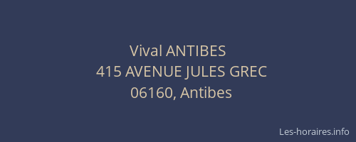 Voici les horaires de Vival ANTIBES situé à Antibes,