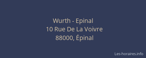Voici les horaires de Wurth - Epinal situé à Épinal,
