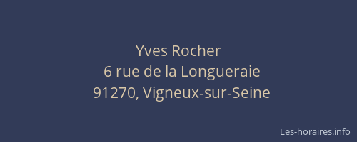 Voici les horaires de Yves Rocher situé à Vigneux-sur-Seine,